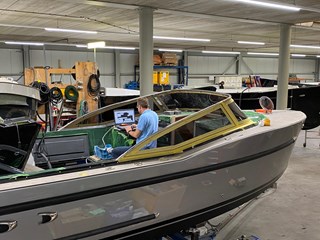 WOUDSEND- Nadat we kort geleden als ’Holland Boat Show’ primeur de Makma Cayos 28 konden laten zien, hebben we nu ook de eerste foto’s van het kleinere zusje: de 27. Op de werf in Woudsend wordt de laatste hand gelegd aan deze nieuwe Makma telg.