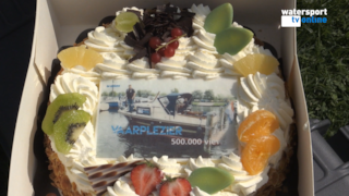 BREUKELEN- De Watersport-TV series Stuurmanskunsten en Vaarplezier hebben de magische grens van 500.000 views overschreden. Een goede reden voor een klein feestje. Met een taart stond producent Eric van Staten langs de Loosdrechtse plassen de instructeurs Arjen Bergijk en Ronald Zweerman op te wachten.