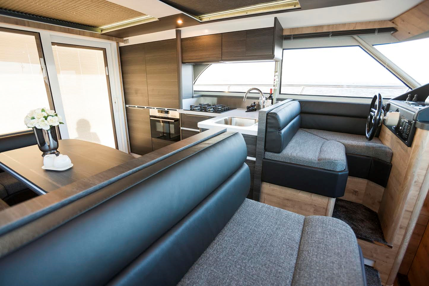 De Aquanaut Majestic is een modern jacht met een knipoog naar het verleden door het overstekende dak en (onderhoudsvrije)houten accenten rond de raampartij, en de opbouw. Aardig is dat het dak achter ongeveer anderhalve meter doorloopt waardoor je in de kuip beschutting kunt vinden tegen zon en regen.