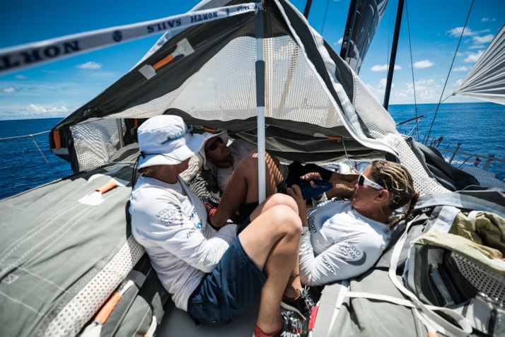 Het gebrek aan wind in de Doldrums maakt het nog erger en vertraagt de voortgang door één van de beruchtste klimaatzones voor zeilers. Op dit moment moeten de teams het doen met een ware windsnelheid van tussen de 1,8 en 3 knopen. Normaliter zorgt lichtweer ervoor dat zeilers meer rust kunnen nemen voordat het volgende front zich aandient, maar er is geen ontsnappen aan de hitte. Benedendeks is het heter dan aan dek. “Het is beneden waarschijnlijk heerlijk 50 graden Celsius en ongeveer 47,8 graden aan dek”, zei Vestas 11th Hour Racing’s Phil Harmer met een glimlach. “De zeetemperatuur is 32 graden. Zelfs de jongens die geen wacht hebben, willen niet onderdeks zijn.”