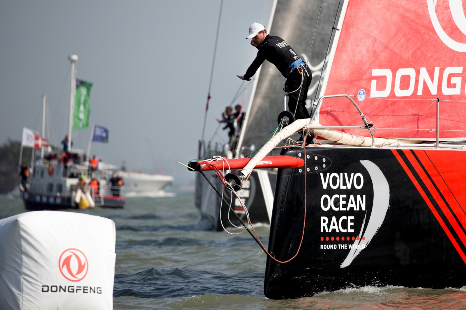 De lokale helden aan boord van Dongfeng Race Team gingen te vroeg over de lijn, net als Sun Hung Kai/Scallywag. Alleen verliep de herstart voor Scallywag netjes en voor Dongfeng rampzalig. Het Chinees/Franse team bleef aan de ankerlijn van de startboei hangen. Tegen de tijd dat ze zichzelf hadden bevrijd, waren de andere teams al honderden meters verder.
