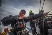 Op het AIS werd zichtbaar dat zowel Team Brunel als MAPFRE achter hen circa 7 knopen snelheid hadden. “Wij haalden niet meer dan 5-5,5 knopen. Dat was vreemd, want er stond nog 6-7 knopen wind. Normaal is je snelheid de windsnelheid of zelfs iets meer. Wij haalden dat steeds niet, dus we vroegen ons af of er iets onder de boot zat.” Tot driemaal stuurden ze een bemanningslid, gewapend met een zaklantaarn, op onderzoek uit. “We weten niet precies waaraan het lag, maar onze snelheid ging weer terug naar normaal. Inmiddels hadden we nog maar 3 knopen wind. Dat was het stuk waarop Brunel snel dichterbij kwam. In de baai hadden we even helemaal geen druk in de zeilen met stroom tegen, terwijl Brunel, MAPFRE en Vestas met 3 knopen snelheid vooruitgingen. Dan hoor je van Pascal dat Vestas ons heeft ingehaald en dat we vierde liggen. Aan het eind hoor je dan nog eens dat MAPFRE voorbij Brunel is. Een erger scenario hadden we niet kunnen bedenken. Echt een zure appel. Maar goed, dat is de uitslag en je doet er weinig aan.”