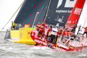 Kort voor het startschot lag Vestas 11th Hour Racing in een kwetsbare positie vlakbij de startlijn. Met nog te veel tijd te gaan om makkelijk aan de goede kant van de lijn te blijven. Daarvan maakte Team Brunel gebruik door het Deense team van schipper Charlie Enright over de lijn te pushen. Dat resulteerde dus in een herstart voor Vestas.
