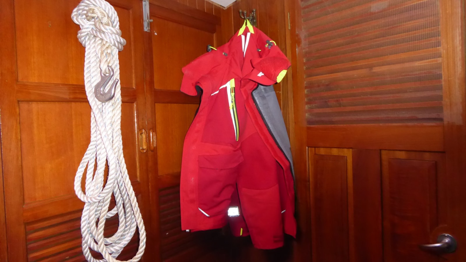 ‘Mammmmmm? Mag ik met zonder jas?’ Ik zie het zo weer voor mij: Fleur, vier jaar oud, twee blonde wiebelstaartjes, die met haar liefste gezichtje mij smekend aankijkt. En vervolgens haar rode jasje met een theatraal gebaar omhoog zwiept en zuchtend zegt: ‘Weet je wel hoe snikheet het buiten is?’ En nu vraagt mijn kappie: ‘Kun je je jas niet eens in het vooronder opbergen, hij hangt echt een beetje in de weg hoor’. Tja, mijn peperdure rode zeiljack, drielaags laminaat, met gesealde naden en extra hoge kraag hangt volledig ademend aan het haakje al maanden werkeloos te zijn. De eerste 14 dagen heb ik ‘m alleen bij mijn nachtwacht gebruikt en daarna is hij achter de deur aan het haakje uit mijn zicht verdwenen. Ik leef dus al 4 maanden buiten MET ZONDER jas, wat een luxe!