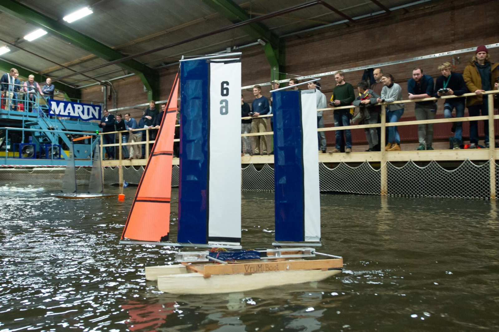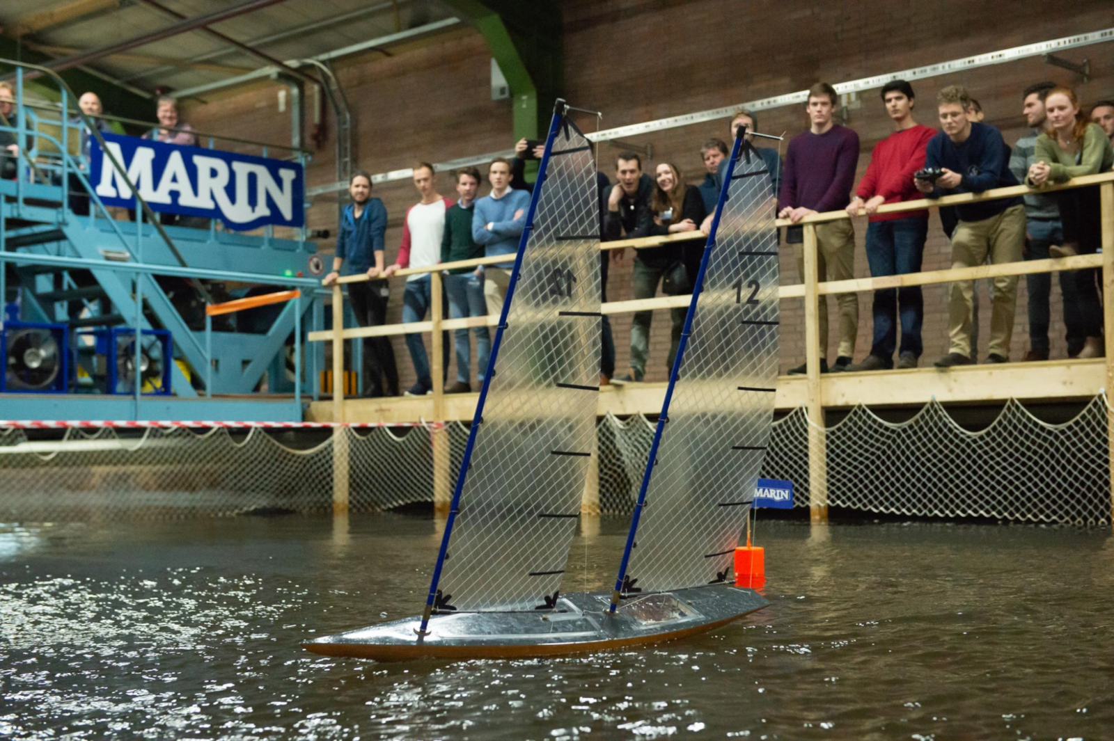 “Ieder jaar worden de regels aangepast om kopiëren van voorgaande jaren onmogelijk te maken. Ditmaal moesten de teams onder andere binnen een maximale waterlijnlengte van 80 cm, breedte van 40 cm en een diepgang van 50 cm blijven, terwijl een relatief grote hoogte boven de waterlijn van 120 cm was toegestaan”, zegt Sanne van Essen, Project Manager bij MARIN. “De creativiteit van de studenten werd op de proef gesteld: hoe ontwerp je een snel en wendbaar bootje binnen een beperkte waterlijnlengte en breedte, en hoe zorg je dat je ontwerp stabiel blijft onder windbelasting? Veel studenten kozen voor een monohull met grote zeilen en verplaatsbare elementen: ballastgewichten in een kantelkiel, outriggers of het hele tuig”