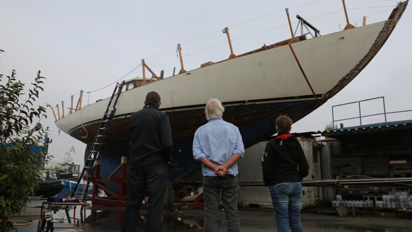 ZAANDAM- ’’Je hoeft niet rijk te zijn, om te genieten,’’ aldus Frans Brandjes. En genieten doet de 66-jarige ondernemer uit Uitgeest van zeiljacht Alert dat hij al twee jaar aan het opknappen is. De houten zeilklassieker werd in 1948 gebouwd, maar stond jarenlang in een loods in Zaandam gestald. Toen Brandjes hoorde dat de eigenaar overwoog het te laten slopen, besloot hij Alert te redden. Als het schip weer vaarklaar is, wil Frans het in Noorwegen neerleggen.