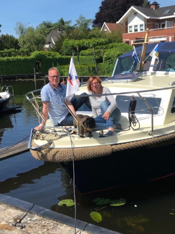 Samen met hun ruwharige teckel Elsa varen Joke Duivestein en Johan Verberk zo vaak als ze kunnen met de Kingfisher: een Antaris Family. ”Sinds 2010 genieten we van de vele tochtjes en tochten.  In het vaarseizoen zijn we ieder weekeinde op de boot te vinden, weer of geen weer. Moet je eens tellen hoeveel (mini-) vakanties dat zijn!’’