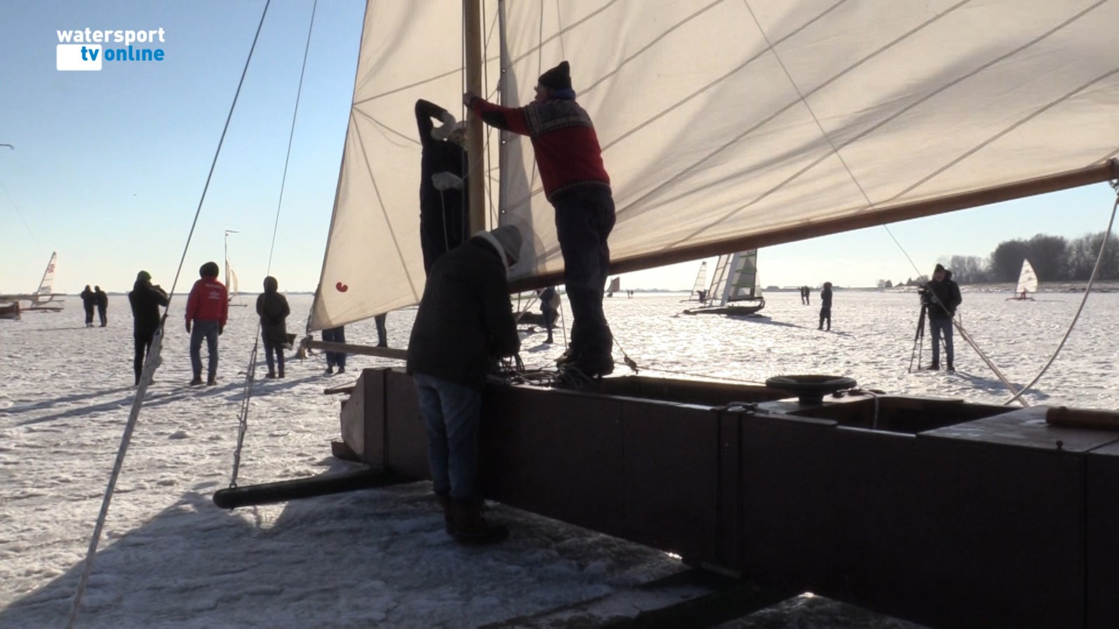 MONNICKENDAM- Twee dagen was Rik Stapel in Monnickendam bezig met het ’vaarklaar’ maken van zijn zelf gebouwde ijszeiler. Het moment om te gaan zeilen op de Gouwzee was aangebroken. Alles leek mee te zitten. Mooi weer en een prima wind. Met hulp van zijn bemanning werd door Rik zijn ijszeiler opgetuigd. Nadat de zeilen waren gehesen kon ’los gegooid’ worden. Onder het gejuich van omstanders vloog de ’Regenboog 102’ er vandoor. Om even later op volle snelheid langs de kust van Monnickendam te ’vliegen.’ Helaas kwam na 5 minuten een einde aan de ijszeilpret, toen de stuur-schaats aan de voorzijde van de ijszeiler afbrak. ’’Jammer, maar het waren in ieder geval onvergetelijke minuten,’’ aldus de laconieke schipper.