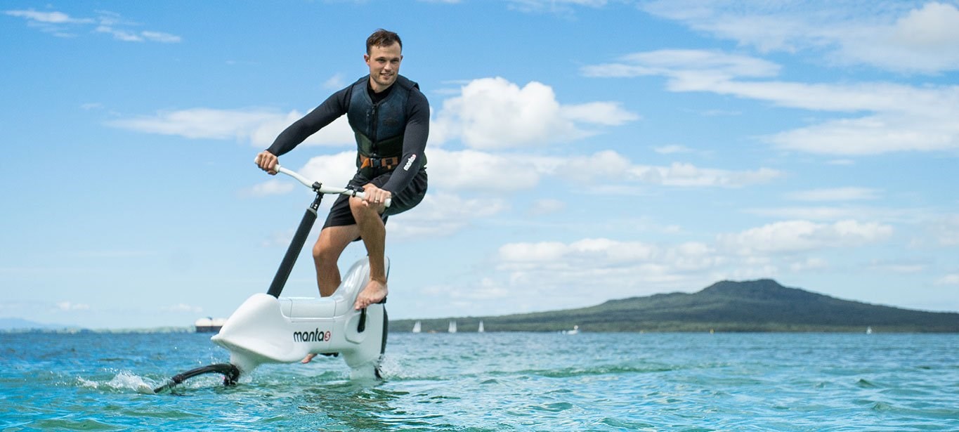 Zo wil het Nieuw-Zeelandse Manta 5 de wereld veroveren een foilende fiets. Dankzij een draagvleugel, een propeller en technologie die we kennen van elektrische fietsen ben je met de Hydrofoiler Bike in staat om over het water te fietsen. Een elektromotor gecombineerd met eigen spierkracht laat je geheel geruisloos met behoorlijke snelheden over het water zoeven. De 22 kilo wegende e-waterfiets begint te bewegen als je gaat trappen en heeft qua uiterlijk veel weg van een hometrainer. Of de Manta5 in ons fiets- en waterrijke land een succes gaat worden, is nog maar de vraag. Wie er een wil aanschaffen, moet hiervoor zo’n 8000 euro betalen.