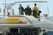 Het Alkmaardermeer is normaliter een plas waar open en kleine kajuitboten varen. Hoe anders is het deze week. In de omgeving van de Stierop lagen maandag op verschillende plaatsen allerlei luxe motorjachten. Argeloze varende voorbijgangers waanden zich even in een Miami achtige entourage. Op een van de jachten, waarvan de naam Bella Vista gedeeltelijk was afgeplakt, werd druk gefilmd.