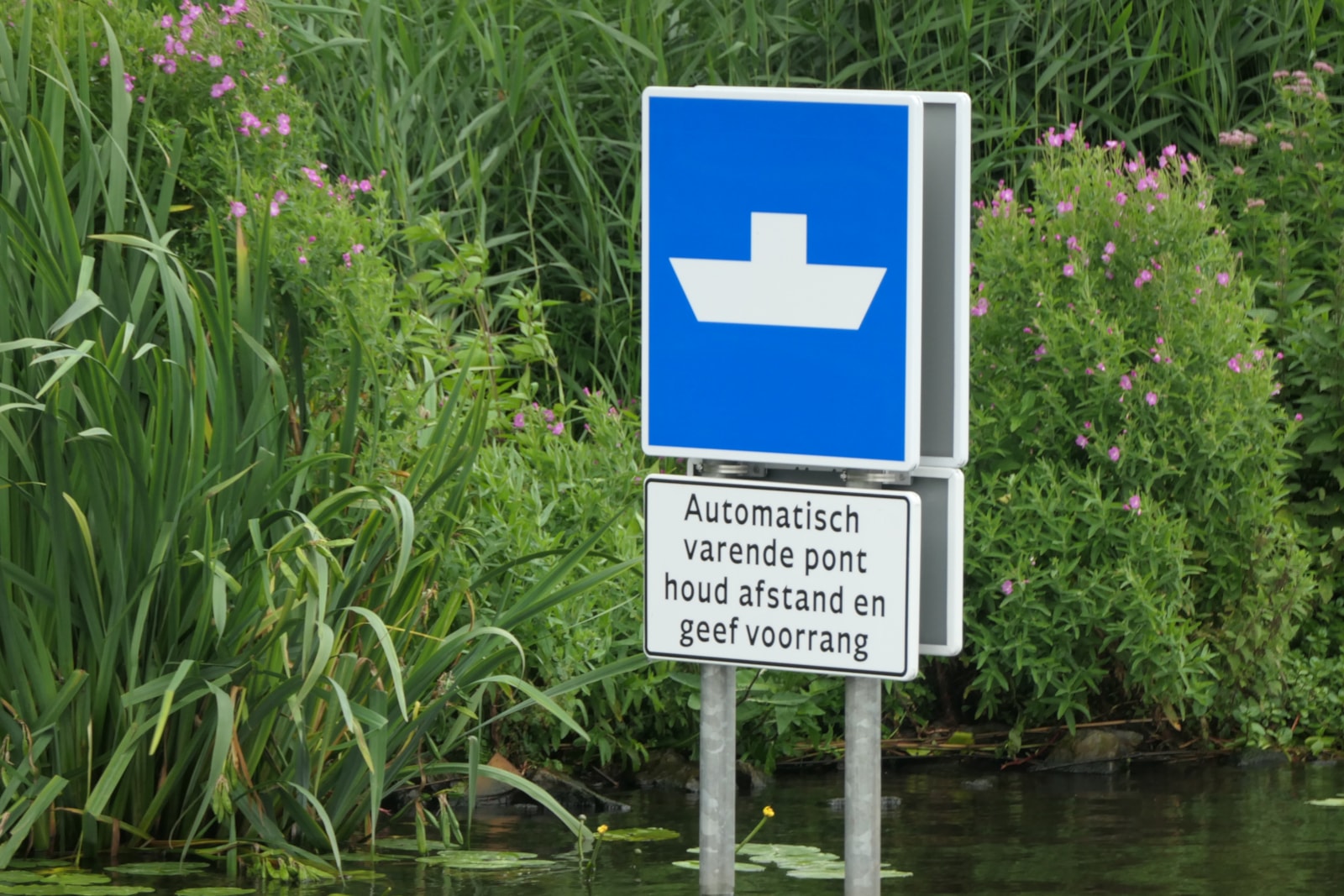 Met borden op de oevers worden andere watersporters/booteigenaren gewaarschuwd voor de automatisch varende pont en verzocht afstand te houden en voorrang te geven.
