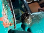 6, Het belangrijkste is het openmaken en schoonmaken van de afvoer van het buiten koelwater naar het spruitstuk, zodat het buitenwater weer ongehinderd met de uitlaatgassen  afgevoerd ken worden (foto 4 en 5)