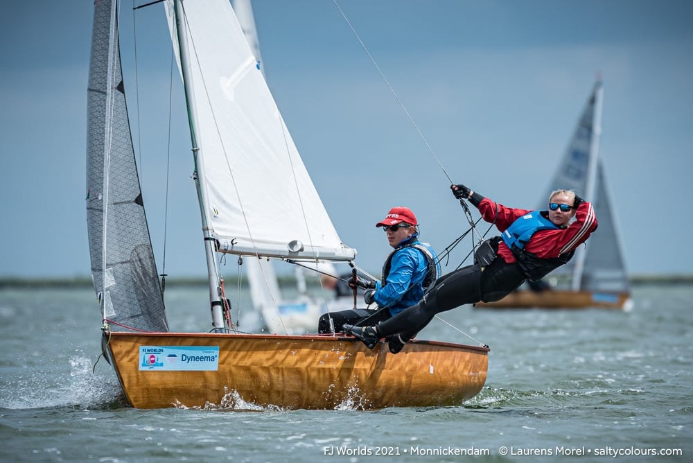 De FJ is goed hanteerbaar en zelfs bij harde wind tot 6 Beaufort, prachtig planerend met de bemanning in de trapeze onder volle spi! De Flying Junior is geschikt voor jonge zeilers vanaf ongeveer 10 jaar en de FJ heeft geen leeftijdsgrens naar boven toe!