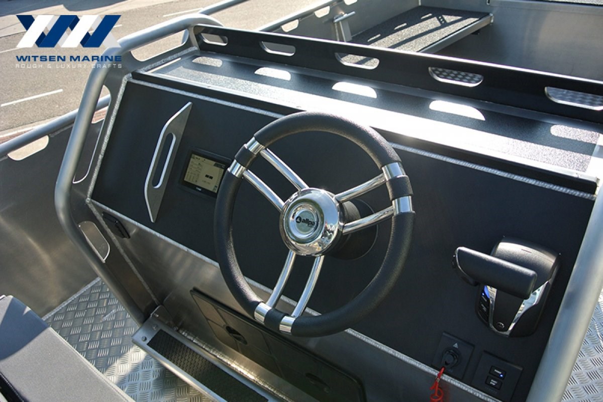 Deze DOCK is uitgerust met onder andere een verhoogde railing, verlengde voorbanken met daarop weersbestendige matten. Tevens heeft deze DOCK een skipaal, 102 liter brandstoftank en een zware stootrand met boatwrapping. Zijn zeer geringe diepgang maakt hem niet alleen makkelijk trailerbaar, maar zorgt er ook voor dat alle vaargebieden toegankelijk worden. Met de rubberen stootrand kan deze DOCK letterlijk tegen een stootje.