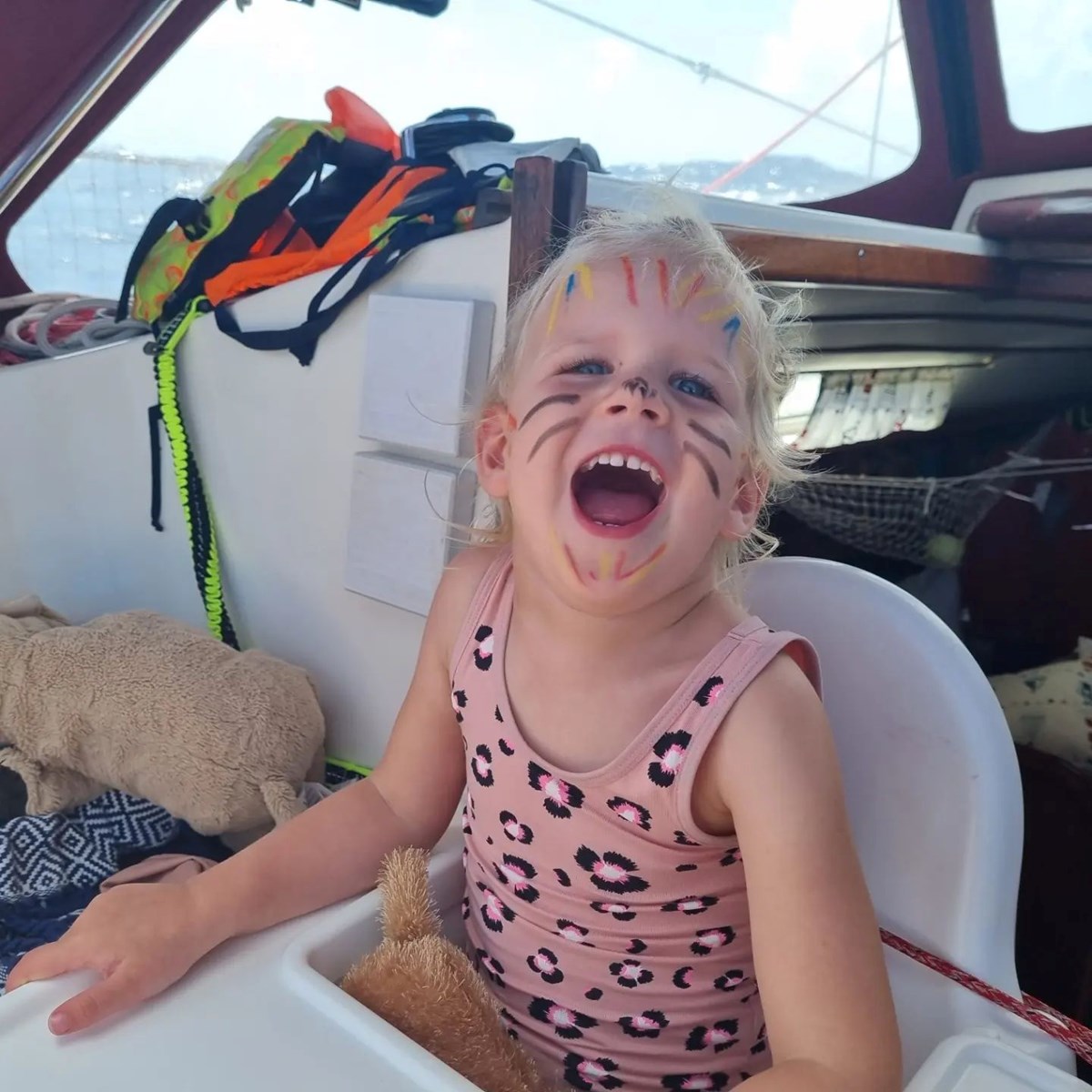 ’’Vanwege Liz zijn onze nachtshifts in 2en gedeeld, 5-6 uur op en af. Daarmee pakken we allebei net wat meer uren slapen en kunnen we de aandacht overdag voor Liz ook goed verdelen. Dit werkte goed voor ons en de dagen verliepen snel. Ook Liz heeft zich goed vermaakt aan boord en heerlijk gespeeld. Waarbij we ook om de zoveel tijd een cadeautje gaven, kleurboek, puzzeltje, poppetje, waar ze uren zoet mee was.’’