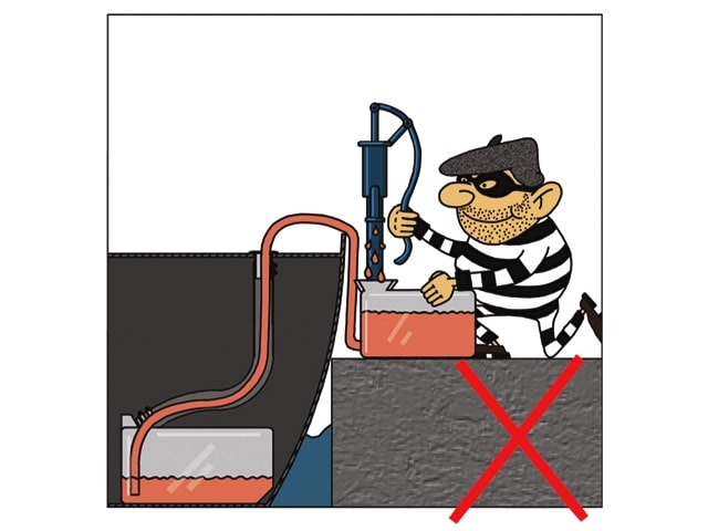 In tegenstelling tot bij auto’s is de brandstofinlaat op boten vaak niet afgesloten of voorzien van een slot. De goedkoopste (rond de €15,- ) en waarschijnlijk eenvoudigste manier om te voorkomen dat brandstof uit de tank wordt gezogen is met de Fuel safe van Vetus. Je plaatst de Fuel safe via de dekdop in de hevelslang. En klaar is Kees.