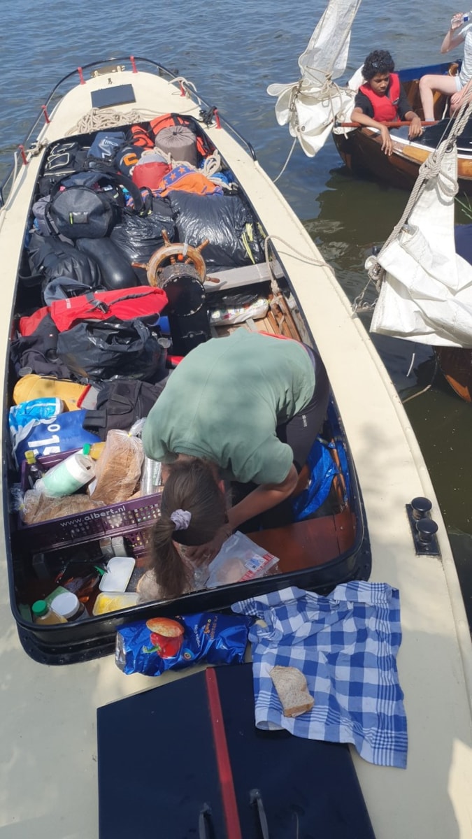 Er vaart een motorbootje mee waar je bagage in wordt vervoerd. Daarin zitten ook tenten, kookgerei en eten. Je bent de hele week zelfvoorzienend en overnachten doen we op een watersportcamping. Boodschappen doen en eten klaarmaken, doe je met z’n allen. Je bent vrij en van niemand afhankelijk. Natuurlijk kun je ’s avonds douchen en gewoon naar het toilet.