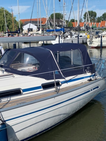 VOLENDAM- Deze mooie, ruime Bavaria 34-3 zeilboot uit 2000 met teak dek is een ideale familie cruiser. In deze comfortabele en goed onderhouden zeilboot is in 2021 en 2022 veel vernieuwd. Zoals een warm water boiler, gasfornuis met oven, acculader/omvormer, koelkast, toilet, nieuwe bekleding in de salon en achterhutten, slaapmatrassen in de voorhut, AIS, radio, USB-aansluitingen, bilgepomp, wandspanners, acculader, zeerailing, muggenhoren en verduistering. Verder zijn alle lijnen, fenders en landvasten vernieuwd. Een nieuwe set zeilen uit 2018 is voor het eerst gebruikt in 2021. De Volvo Penta MD2030 motor heeft in 2021 groot onderhoud gehad.