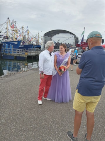 We hadden afgesproken met Juliet en Niek. Een jong stel dat de watersport mogelijkheden op en rond de haven ging ontdekken. We waren aanwezig bij het admiraalzeilen bij de zeilschool zaterdag. Het grootste zeilkamp van dit seizoen werd hiermee afgesloten onder toeziend oog van de ouders van de kinderen. Tussen het zeilen en suppen door brachten we een bezoek aan de Visserijdagen.