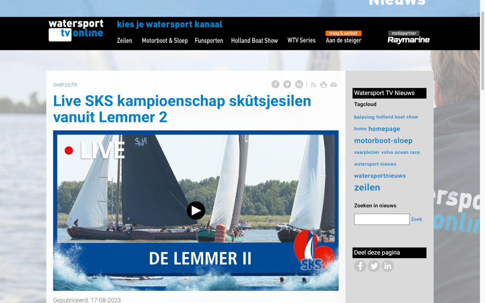 Op alle wedstrijddagen kun je op Watersport-TV de live-uitzending van Omrop Fryslan van het SKS-kampioenschap bekijken. De rechtstreekse uitzending start rond 14.00 uur.