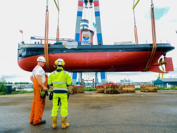 Stoere sterke stoomslepers waren de werkpaarden van de Rotterdamse haven anno 1950. Na een ingrijpende renovatie is het schip vanaf nu weer te zien in de Maritiem Museum Haven. Woensdag werd het schip met een indrukwekkende bok weer in het water gezet. Het afgelopen half jaar is bij ROG aan de Waalhaven druk gewerkt aan het achterschip. Ook zijn de vlam- en steunpijpen van de stoomketel vervangen.