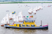 De nieuwe Panschipper Karst Doevendans ging woensdagmiddag met zijn familie aan boord van het startschip om het traditionele rondje om het eiland te maken. Er was veel getoeter en gejuich voor de tevens aftredende voorzitter van de KWS als eerbetoon en bedankje voor zijn inzet.