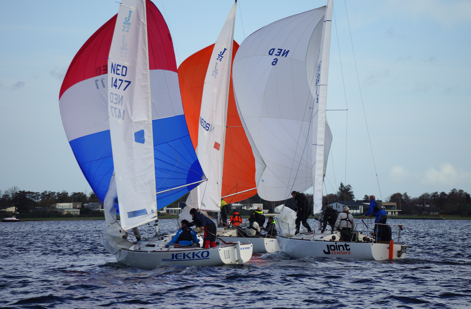 Veerse Meer – Het succes van Jeannot Bruggeling en Rutger Krijger zet zich voort. Met hun J/24 Jack Around won het duo maar liefst vijf van de zes races tijdens de eerste wedstrijddag van de Wintersprinter op het Veerse Meer. Victor Caminada voer een sterke serie met zijn J/22 Jekko en eindigde als tweede. Team Jong Belegen completeerde het podium met een fraaie derde plaats.