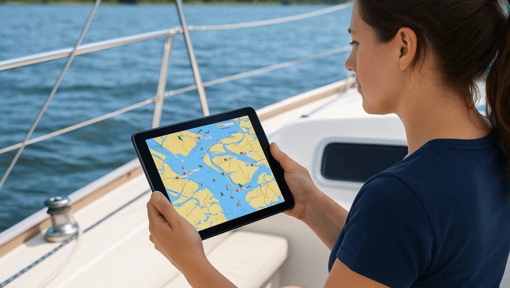 Let op: apps zoals Waterkaarten kunnen je positie via internet delen met andere gebruikers van dezelfde app. Maar dit is géén AIS: schepen met een echte AIS-ontvanger of plotter zien je dan niet, tenzij je ook een AIS-transponder aan boord hebt.