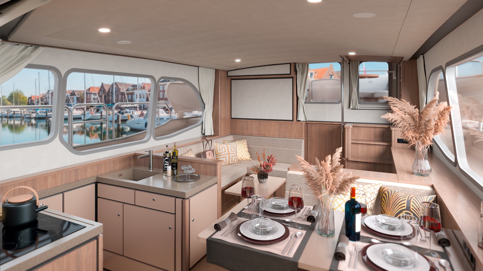 Iedereen die een indruk wil opdoen van de nieuwe interieurs wordt uitgenodigd om naar Boot Düsseldorf (17-25 januari) te komen. Hier presenteert Linssen in Hal 1, Stand B15 de nieuwe .1 interieurs met interieurmodules van salonbank, pantry en douche.