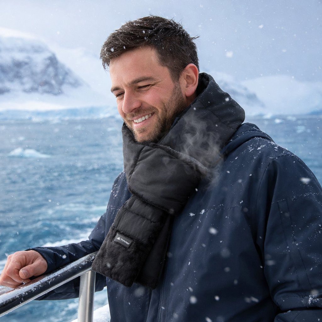 De THAW sjaal is voorzien van: Een oplaadbare 5000 mAh powerbank (USB-A naar USB-C) met batterij- en laadindicator. Een ultra-zachte fleecevoering en geïsoleerd synthetisch dons. Een wind- en waterbestendige nylon buitenlaag. Zo blijf je comfortabel warm, ongeacht het winterweer.