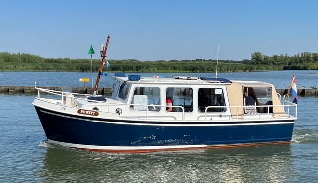 Een zo goed als nieuwe Makma Kajuitvlet 10.15 OK. Dit is de enige Makma vlet van dit type, deels nog gemaakt door de oud-eigenaar van de Makma-werf in Warmond.