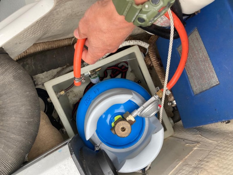 Los van gasflessen die nog overal aan boord waren, bleken de rubberen gasslangen die we controleerde bijna allemaal ver over datum.…